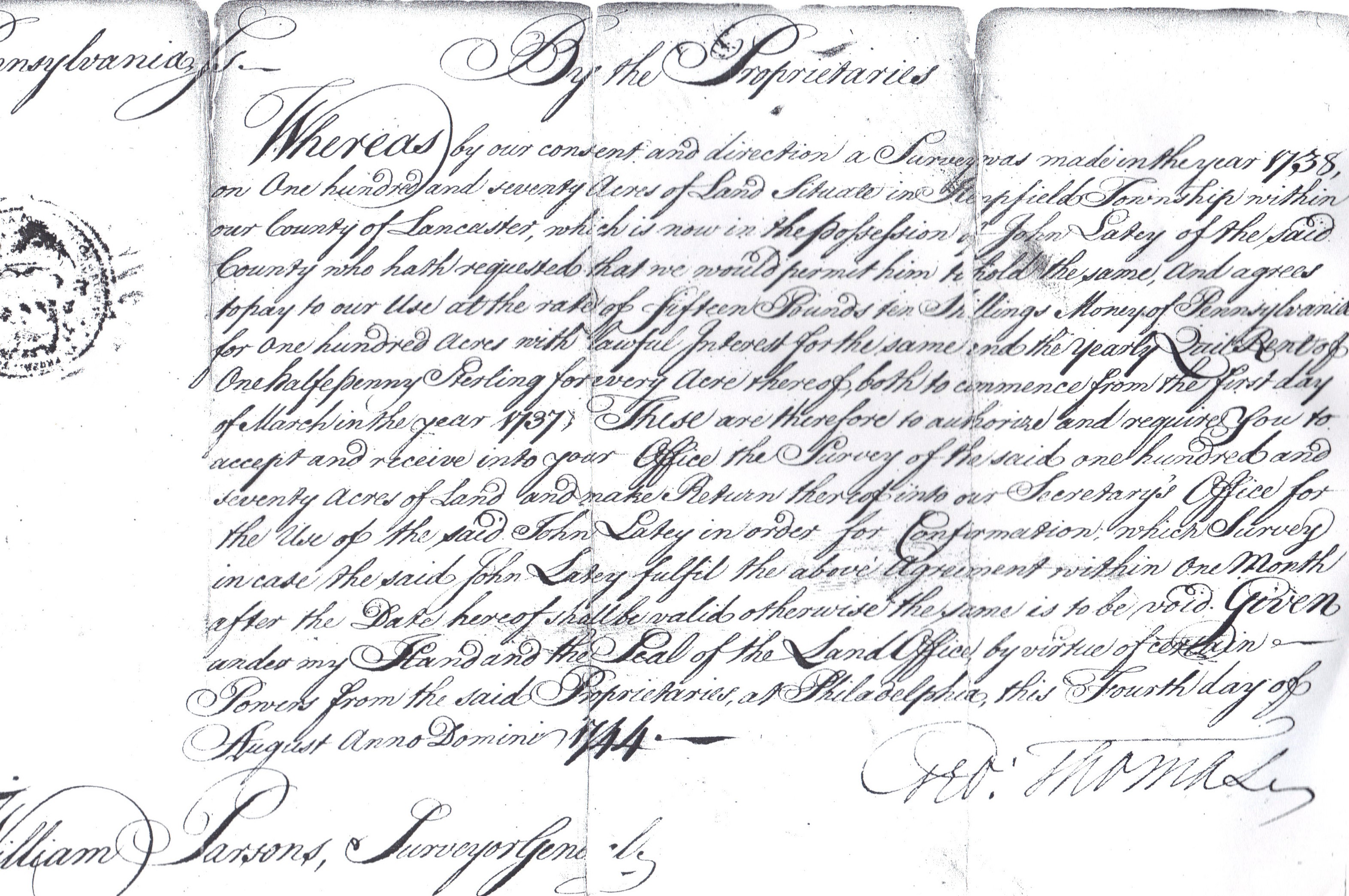 18, 1738, a tract of 170 acres in Hempfield Township, Lancaster