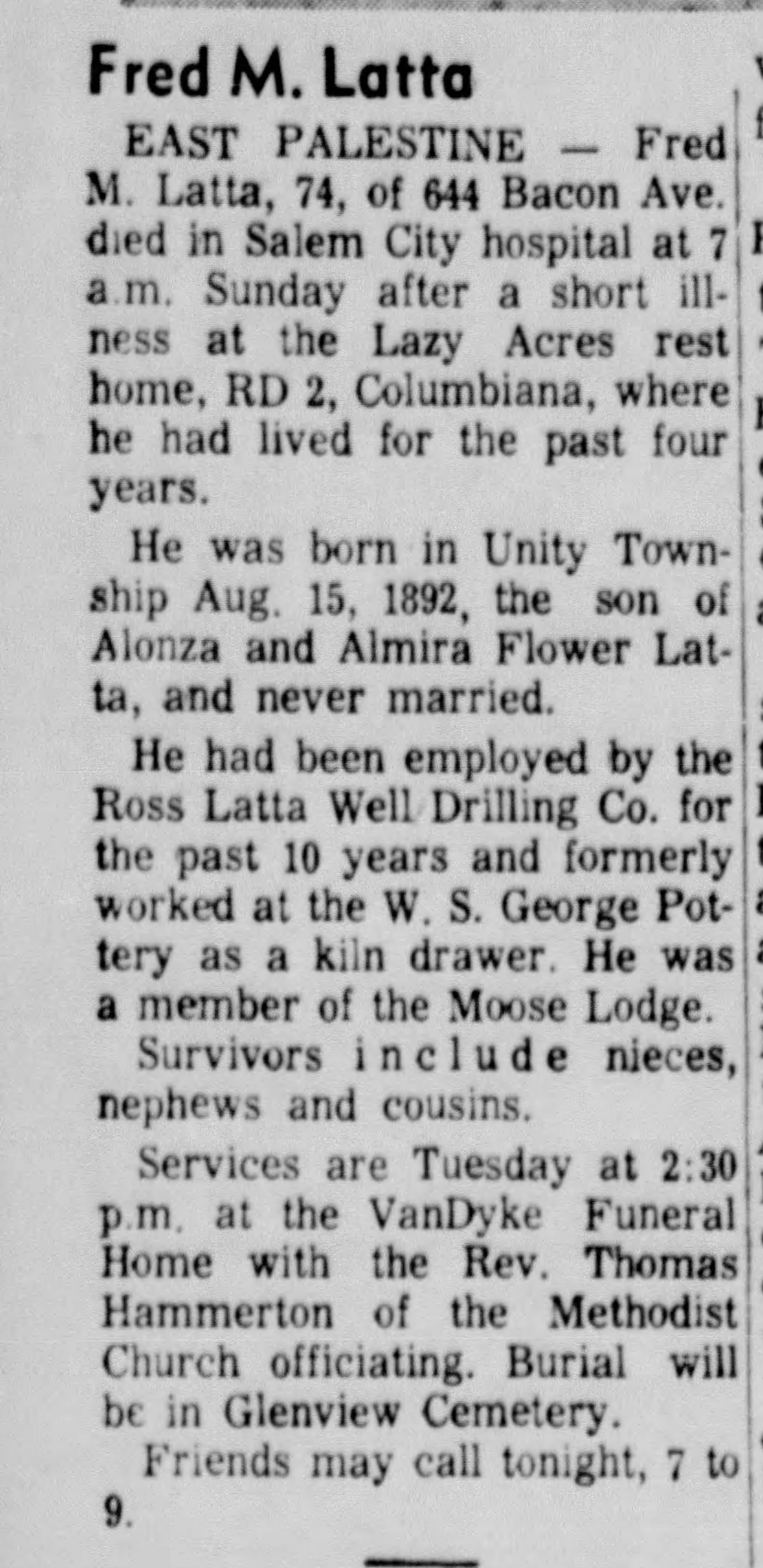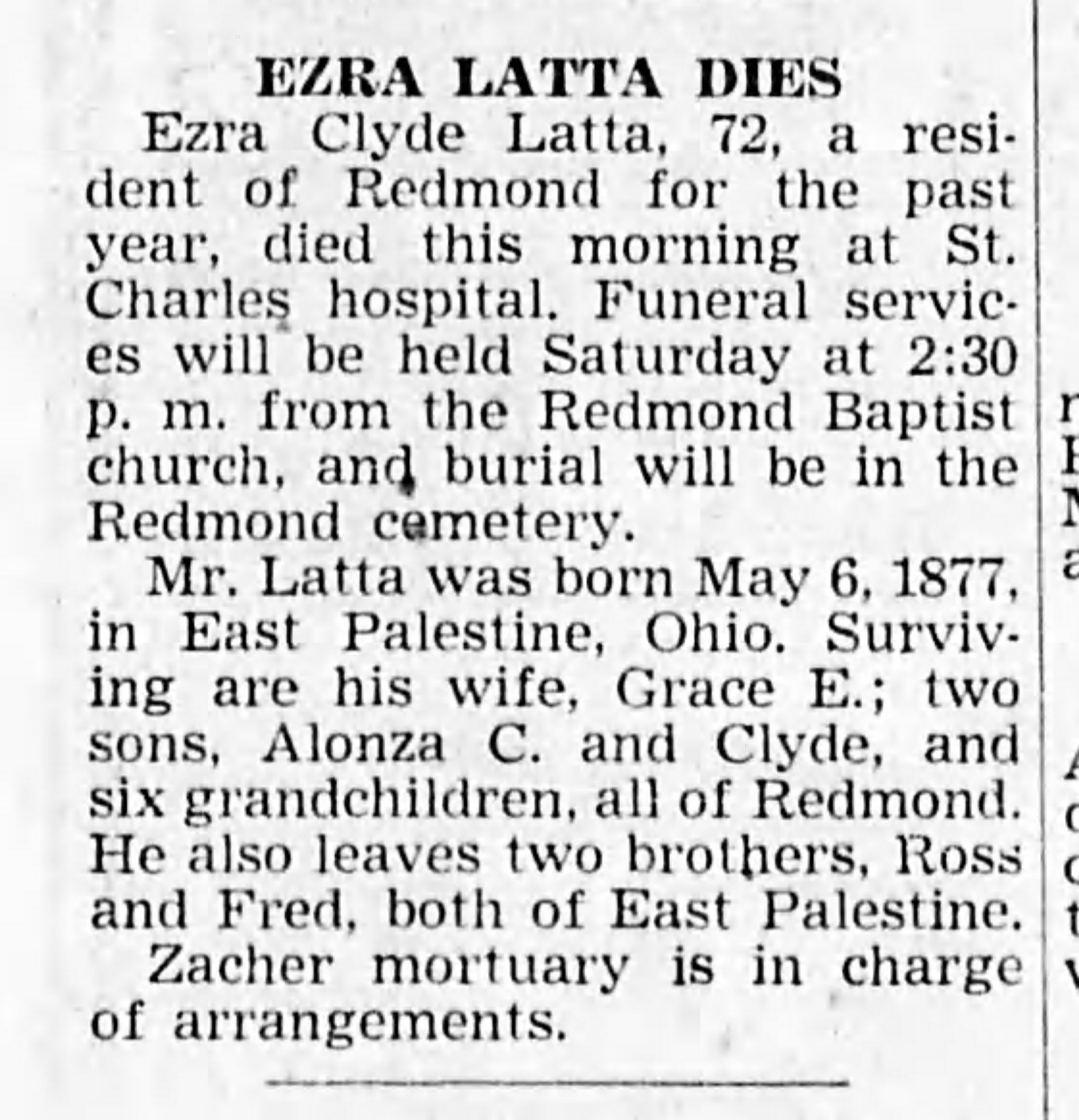Palestine, Ohio. He died March 1, 1950 in Redmond, Oregon. He is buried in the