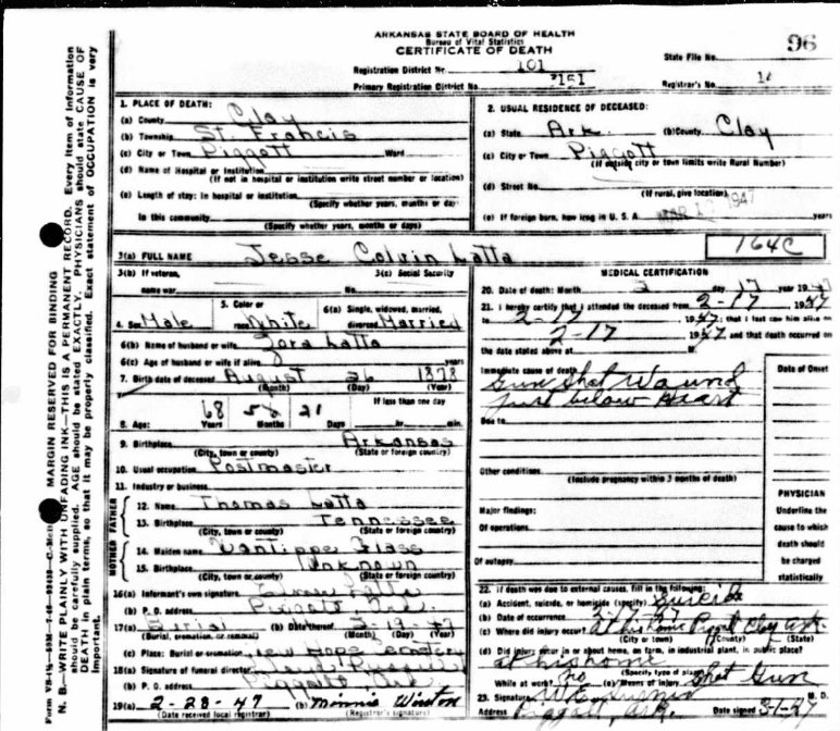William S. (2) John (1). Born September 20, 1882 in Piggott, Arkansas; d.