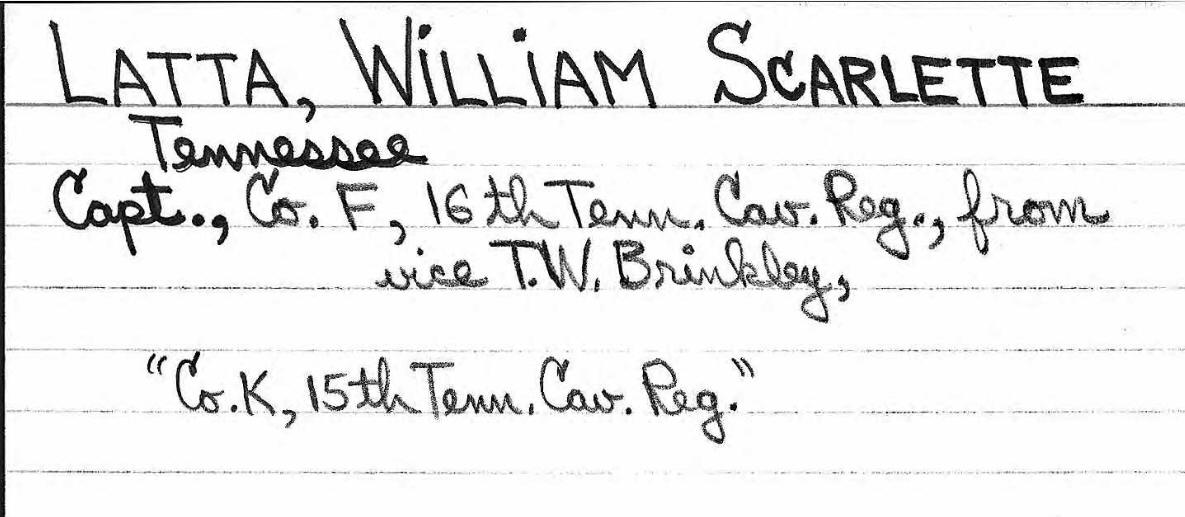 Married Margaret Sarah Scarlett. John Spencer Carter, grandson of John Latta, writes: "I think