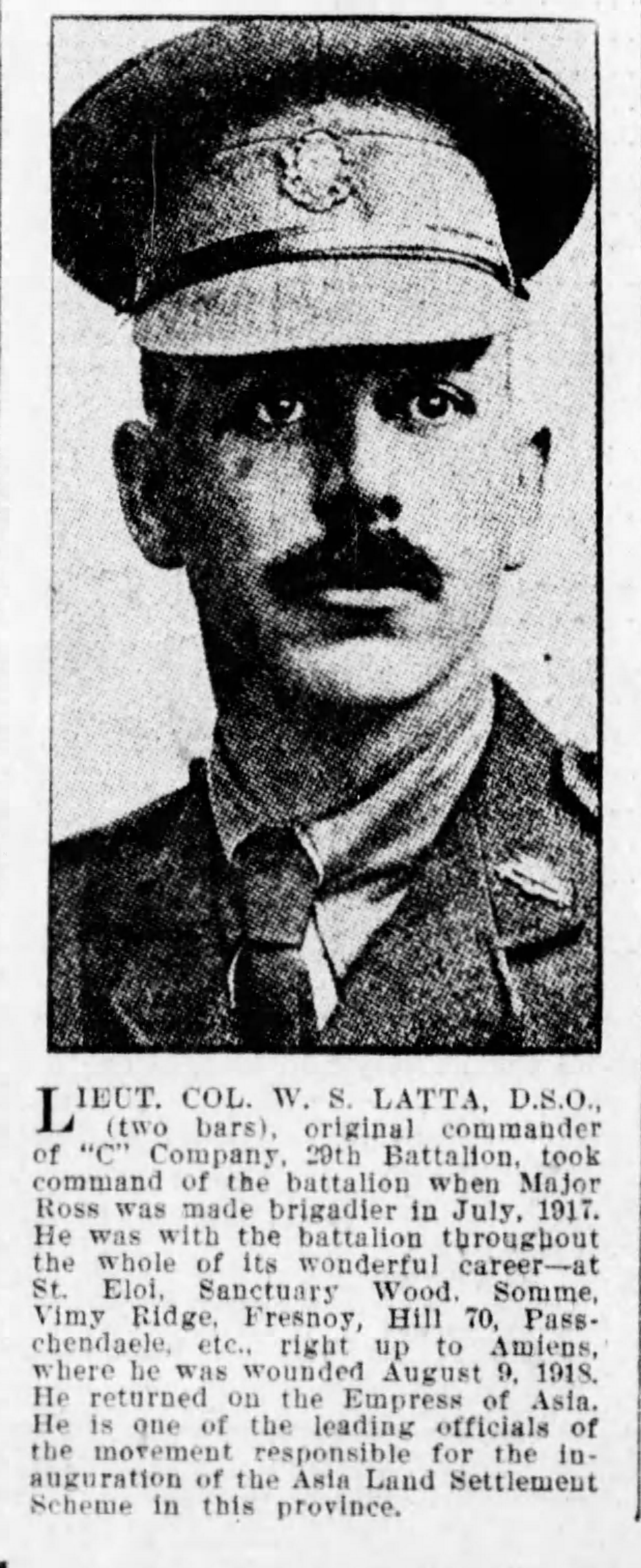 years 1814-1818 in the World War in the 29th (Vancouver) Battalion, Canadian