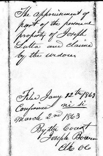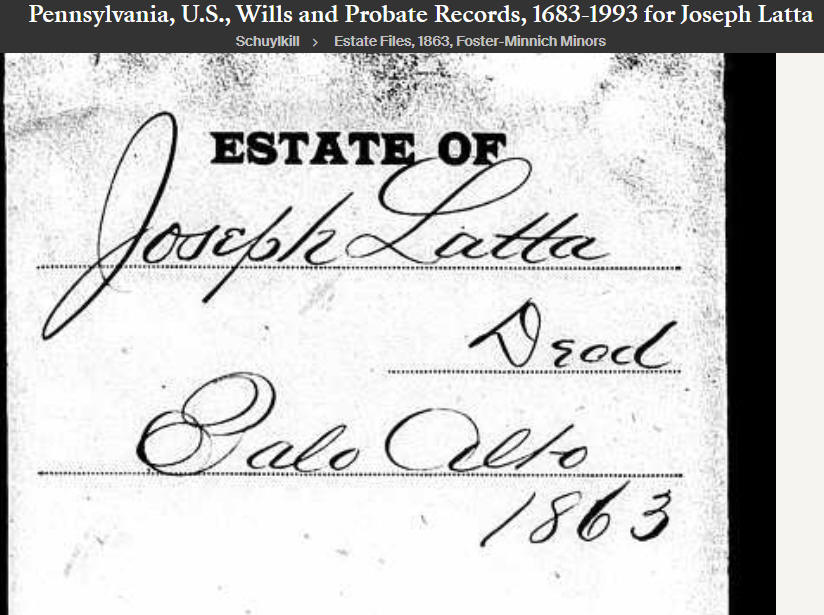 Testament listed his daughter Mary, married to Joseph Latta. Joseph Latta