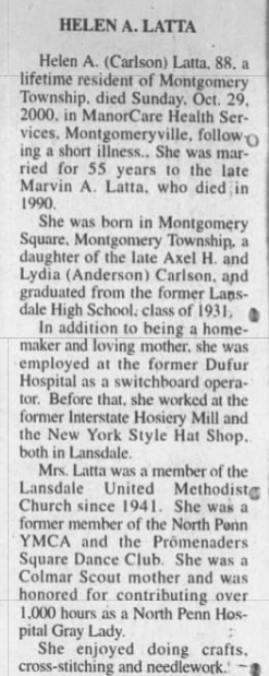 b. October 21, 1912 at Smyrna, Del.; d. June 26, 1990 at Lansdale, Delaware.