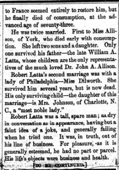 found that the below 1 Robert (1) Latta was NOT the same Robert Latta of Branch