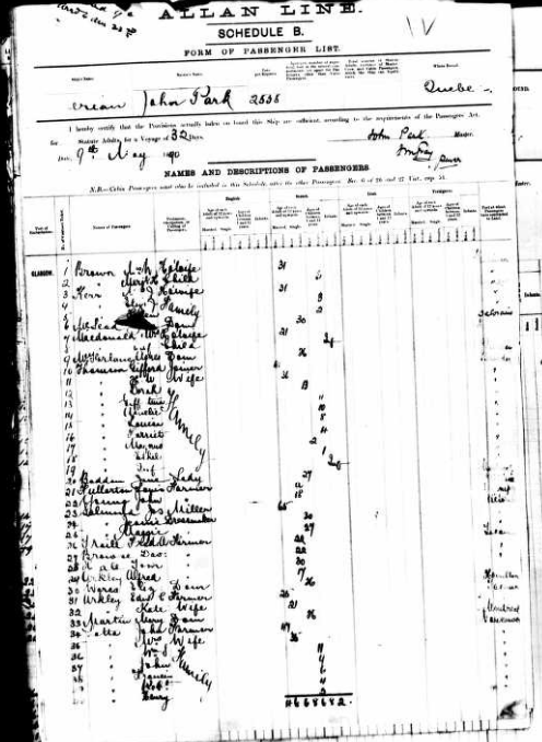 John and his family arrived in Quebec, Canada on May 22, 1890 from Glasgow, Scotland on board the Siberian.