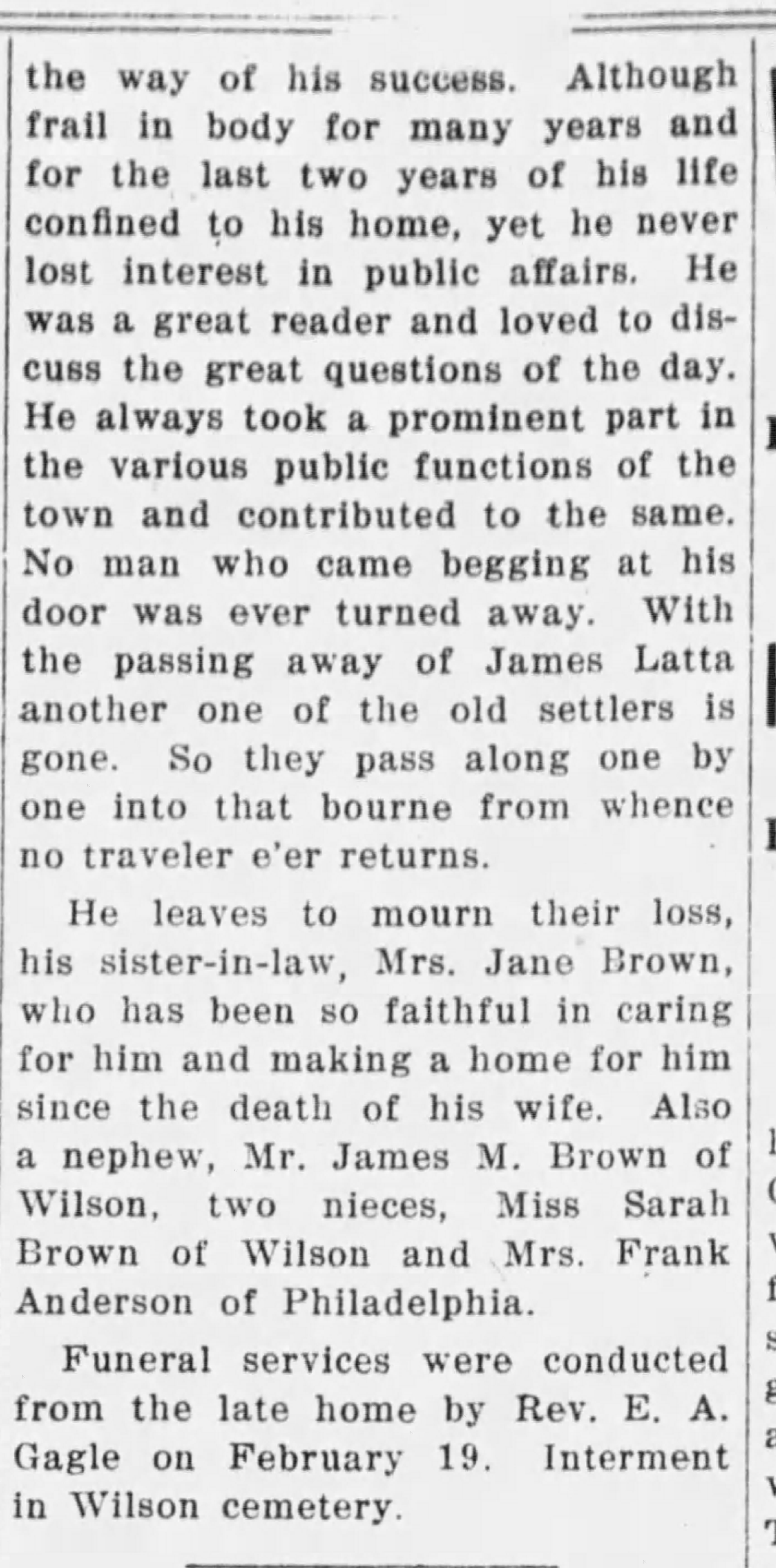 of information about the Latta family. I wrote to Judge Latta in 1931 but the
