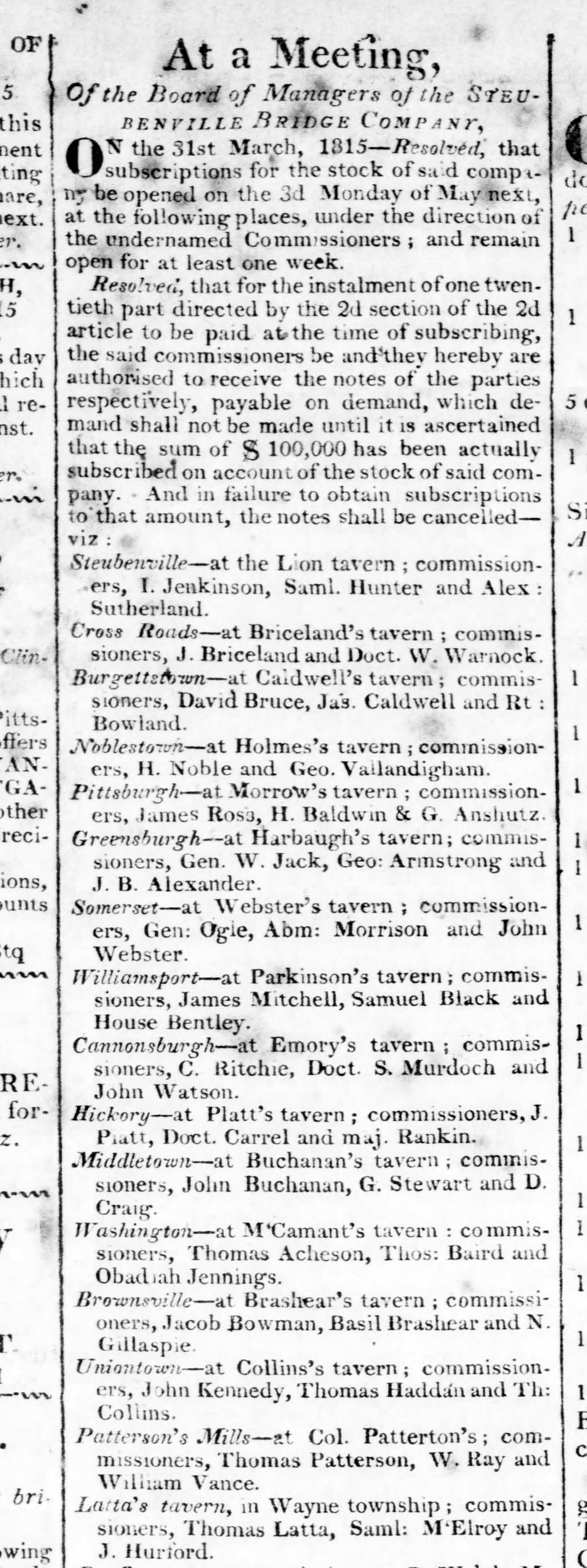 The "Western Herald," of Steubenville, OH on March 30, 1818